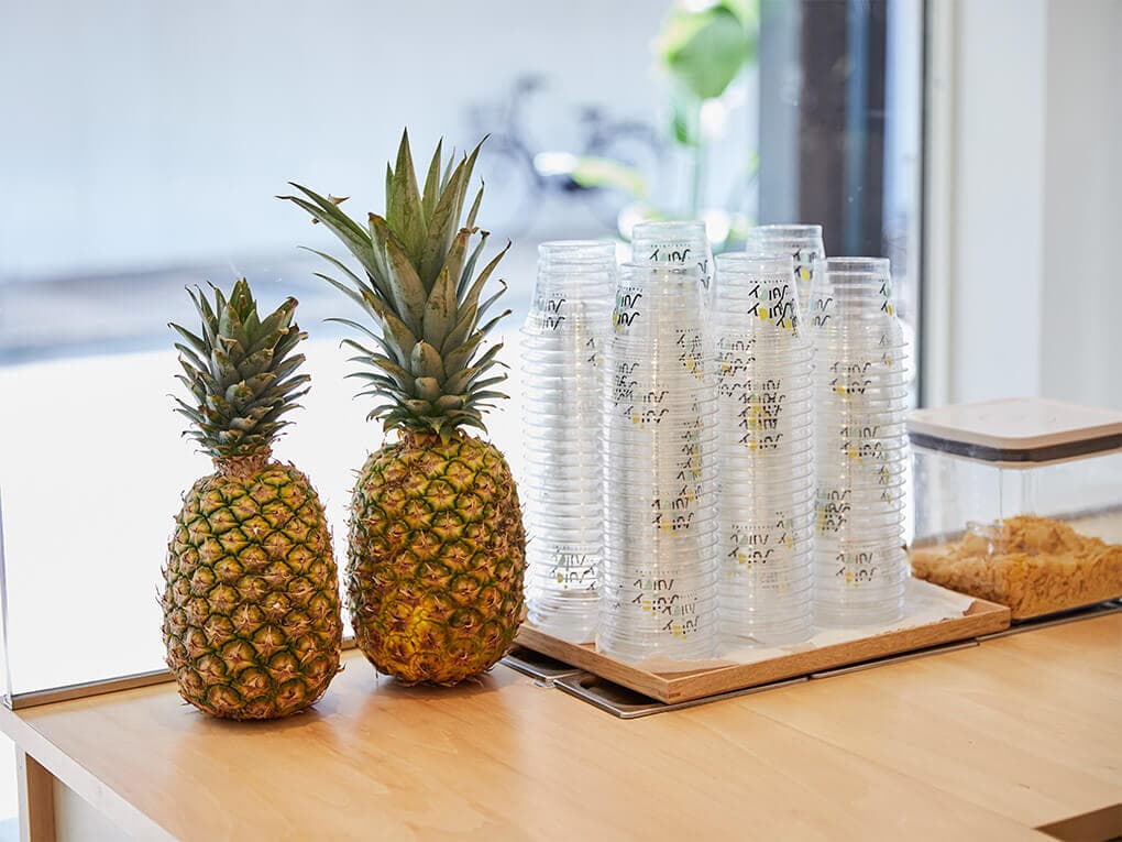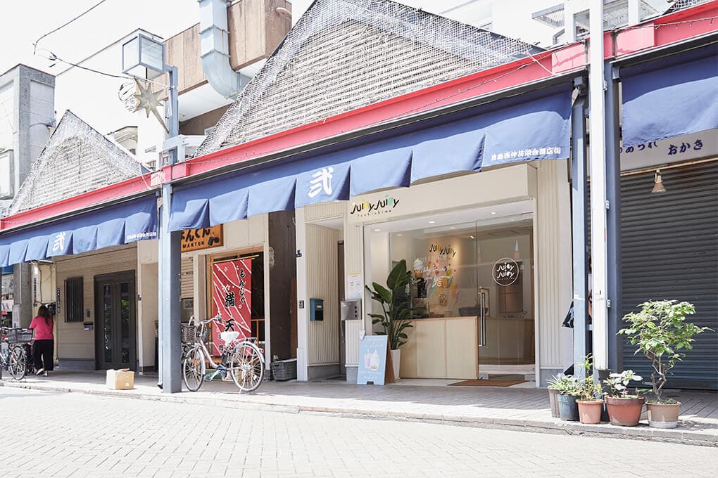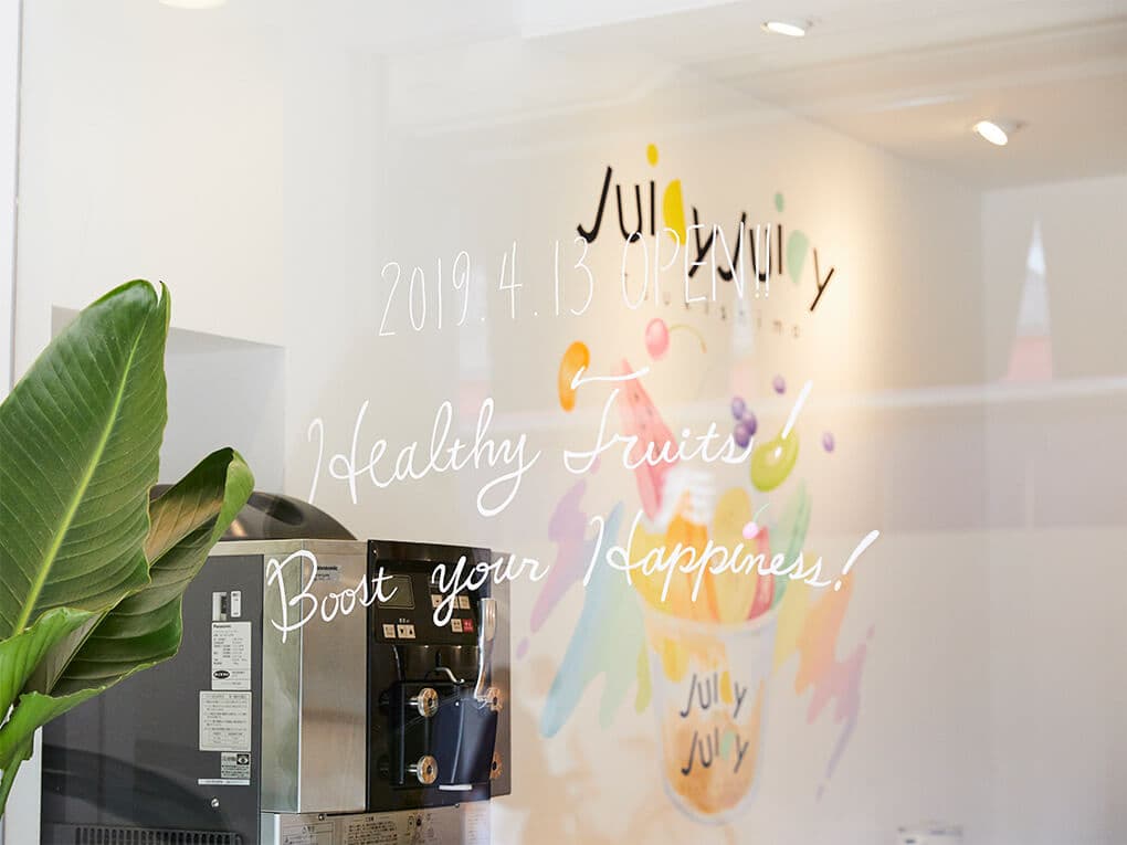 月島もんじゃストリートに、フローズンヨーグルトのお店を出店するお手伝いをさせていただきました。ソフトクリームの上に様々なフルーツをトッピングする商品のイメージをインテリアでも表現することをコンセプトに、シンプルな白い空間の中にカラフルなイラストを配してアイキャッチにすることをご提案しました。