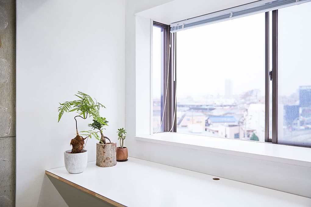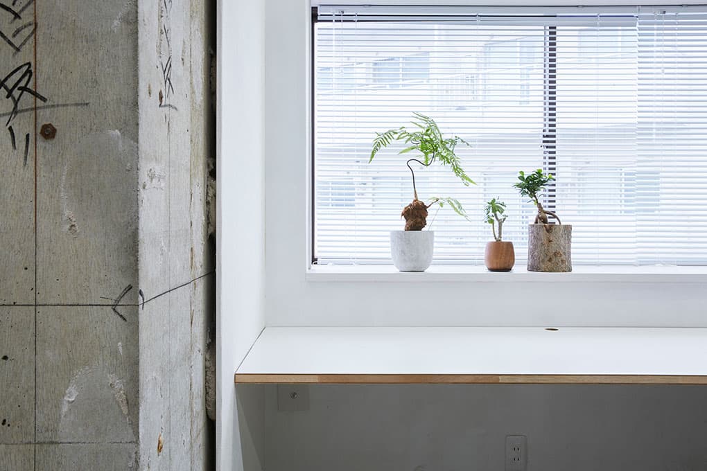 解体跡をそのまま残した無骨さとシンプルな白壁の対比ですっきりと仕上げました。
